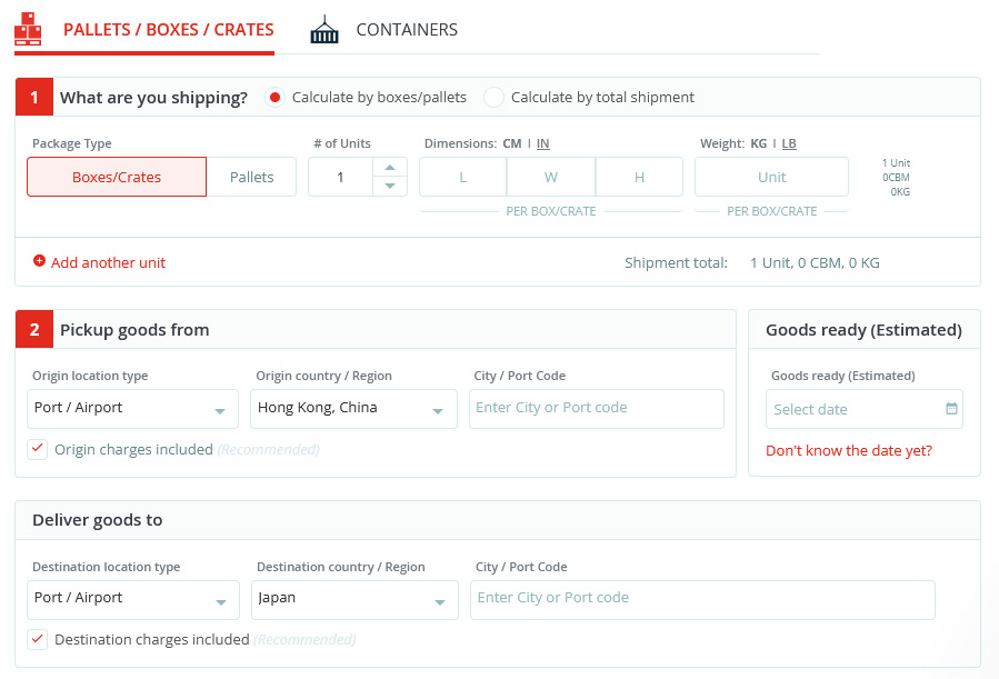 Note: Rates can change based on the actual goods ready date.